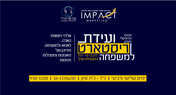 ועידת ריסטארט להעצמה והובלה של כל המשפחה הגרעינית קדימה. 14 מטפלות ומאמנות בהרצאות מרתקות על מגוון נושאים המשותפים לכל משפחה: זוגיות, גידול ילדים, ויסות חושי, מתבגרים, קשב וריכוז, ערך עצמי, שליטה ועוד..
